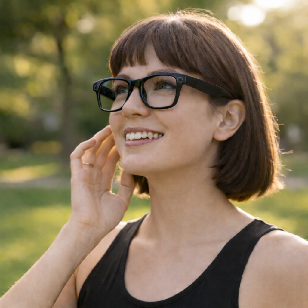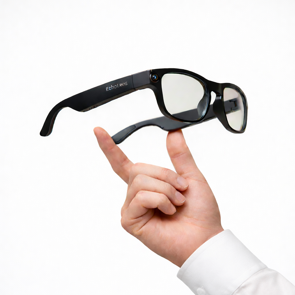 With a sleek silhouette and modern finish, EchoLens blends advanced technology with effortless, all-day elegance, designed to complement any outfit, anywhere.