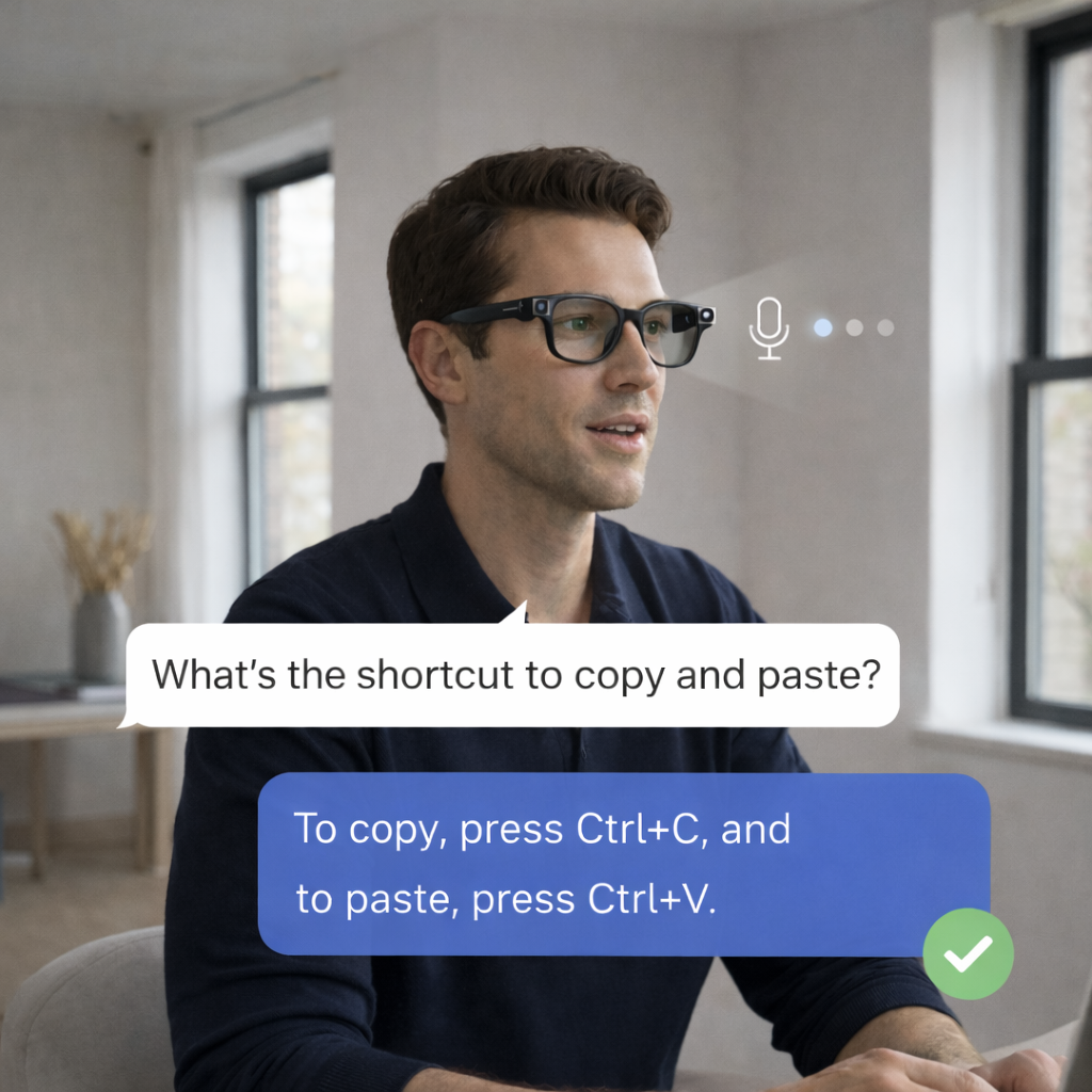 The app handles connectivity and processing in the background, allowing the AI assistant to support everyday tasks, questions, and conversations while you stay focused and hands-free.